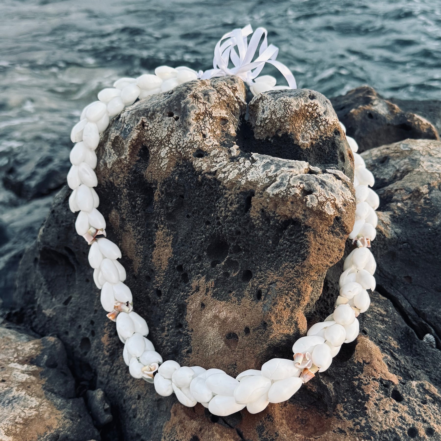 ハワイアンストアの編み込みバブルシェルとククイのウェディングレイ